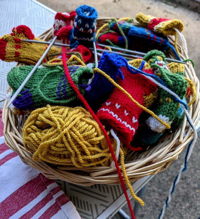 Все начиналось довольно невинно и просто. Решила, что не хочу делать муляжи, а свяжу реальные носки, пусть маленькие, но со всеми с пятками, убавками и прибавками. Никакого плана у меня не было кроме количества.